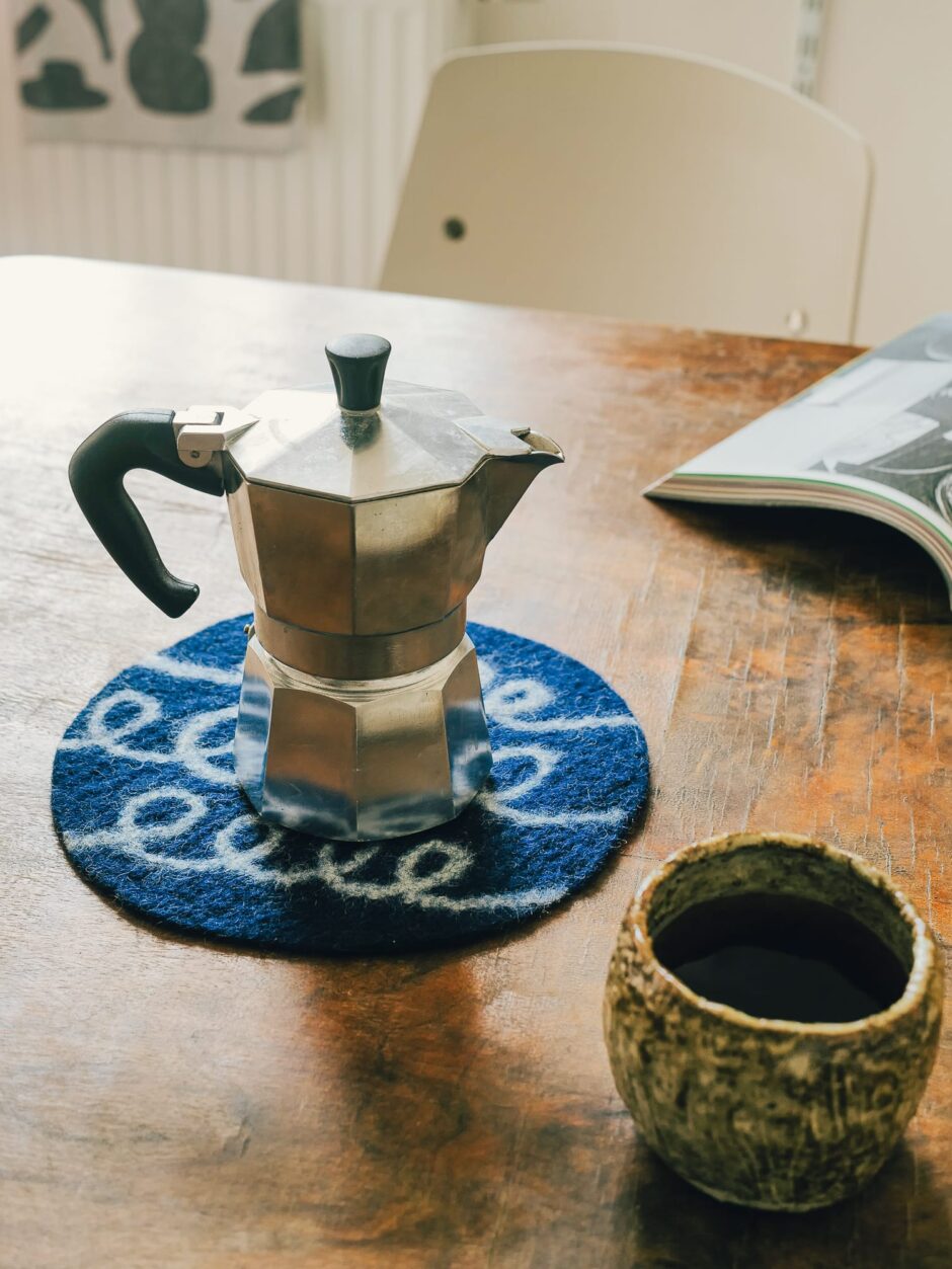 Our original abstract motif from the Tea Ceremony collection is directly woven on a jacquard loom from pre-dyed yarns. Woven in a small weaving mill in the north of the Czech Republic.